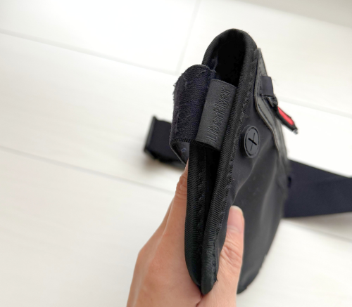 一般的なウエストポーチのように厚みが出にくく、服の下にも隠しやすい作りになっています。